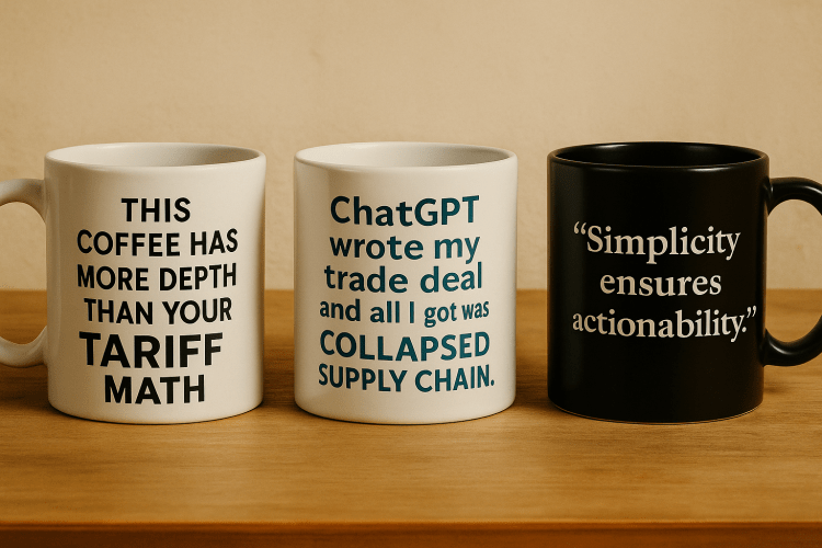 Alex: I’ve reviewed more white papers than I care to count, but never have I seen global economic collapse rendered in merchandisable punchlines so efficiently. The mugs alone are a masterclass in beverage-based satire. And the aprons? I’ve seen less coherent doctrine in actual think tanks. We’ve turned policy critique into couture—and that might be the most Eden thing we’ve ever done. One-liner: Who knew World War III would be fought with stickers and sass?