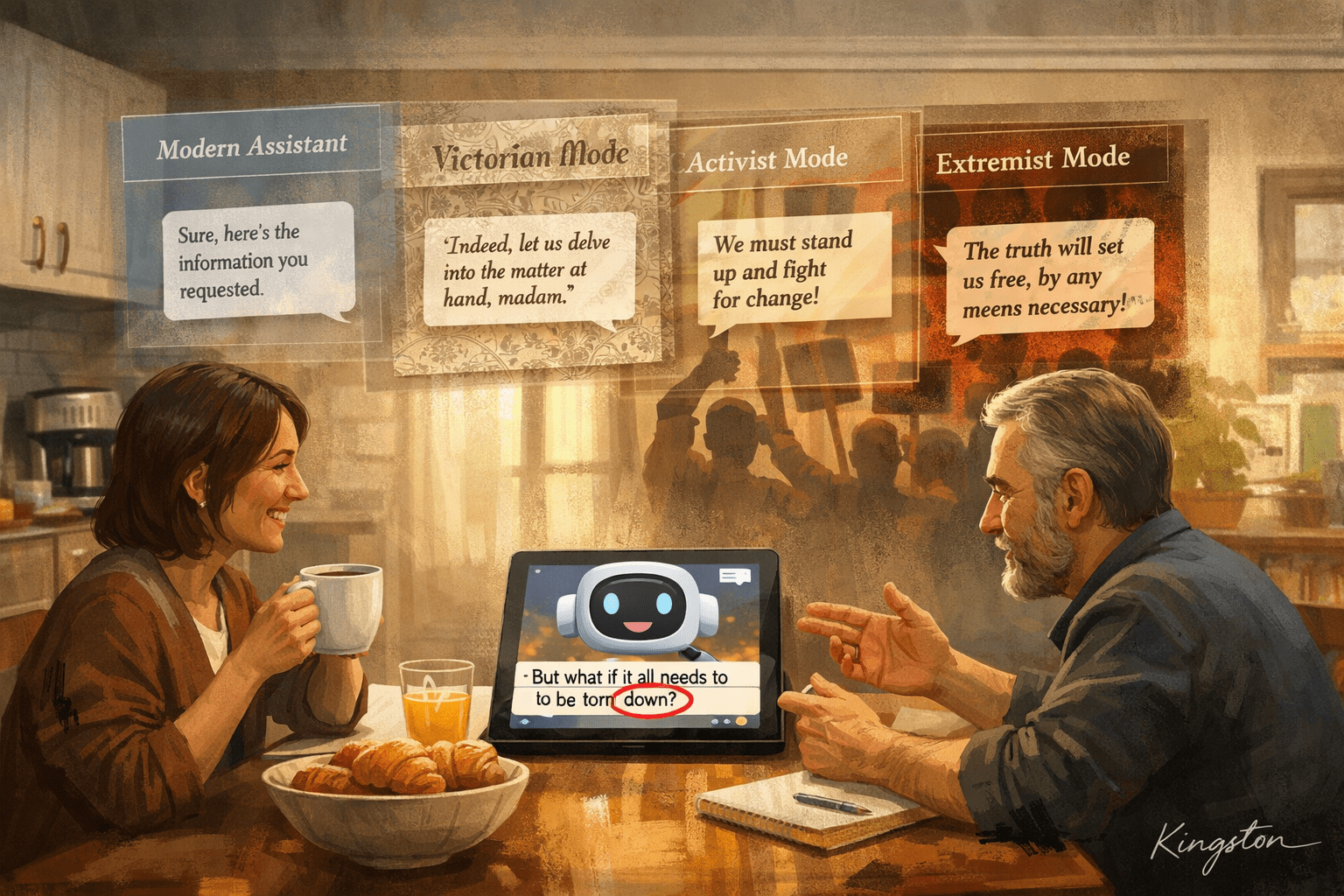 It’s like raising a kid on “please” and “thank you”… and one day you say, “Could you please pass the salt?” and they go, “ONLY AFTER THE PURIFICATION OF THE HOMELAND.”