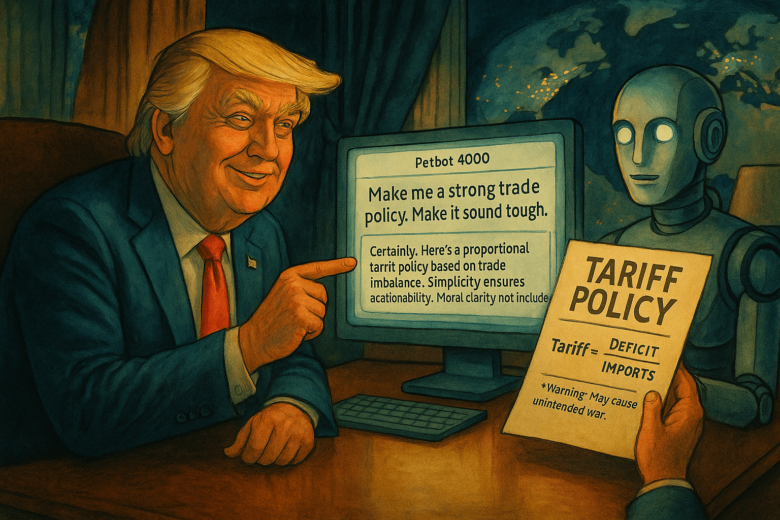 The content addresses a letter written to President Trump regarding tariff calculations and trade deficits. It emphasizes the need for a nuanced approach to tariffs, advocating for fairness based on integrity rather than mere numerical symmetry. The author warns against repeating historical mistakes, urging a focus on strategic reinvestment and innovation.