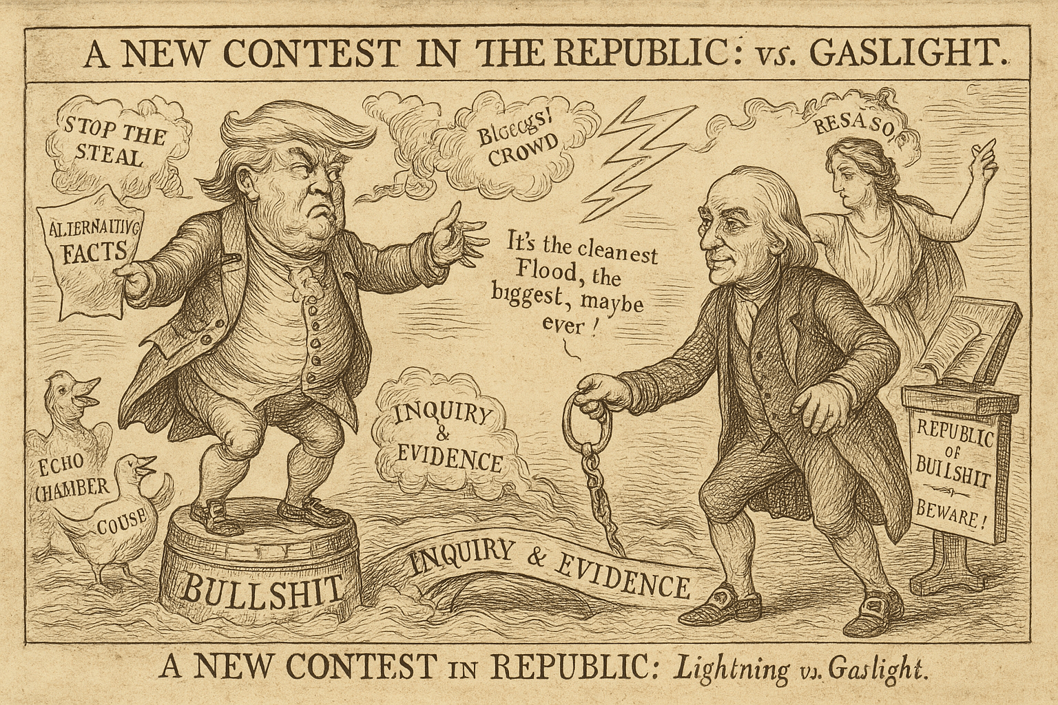 The text critiques the rise of “Bullshit” as a more dangerous force than lies in contemporary politics. It distinguishes between liars who acknowledge truth and bullshitters who disregard it for applause. The author, Benjamin Franklin’s Ghost, warns that a society embracing bullshit undermines reason, ultimately threatening democracy and the value of truth itself.