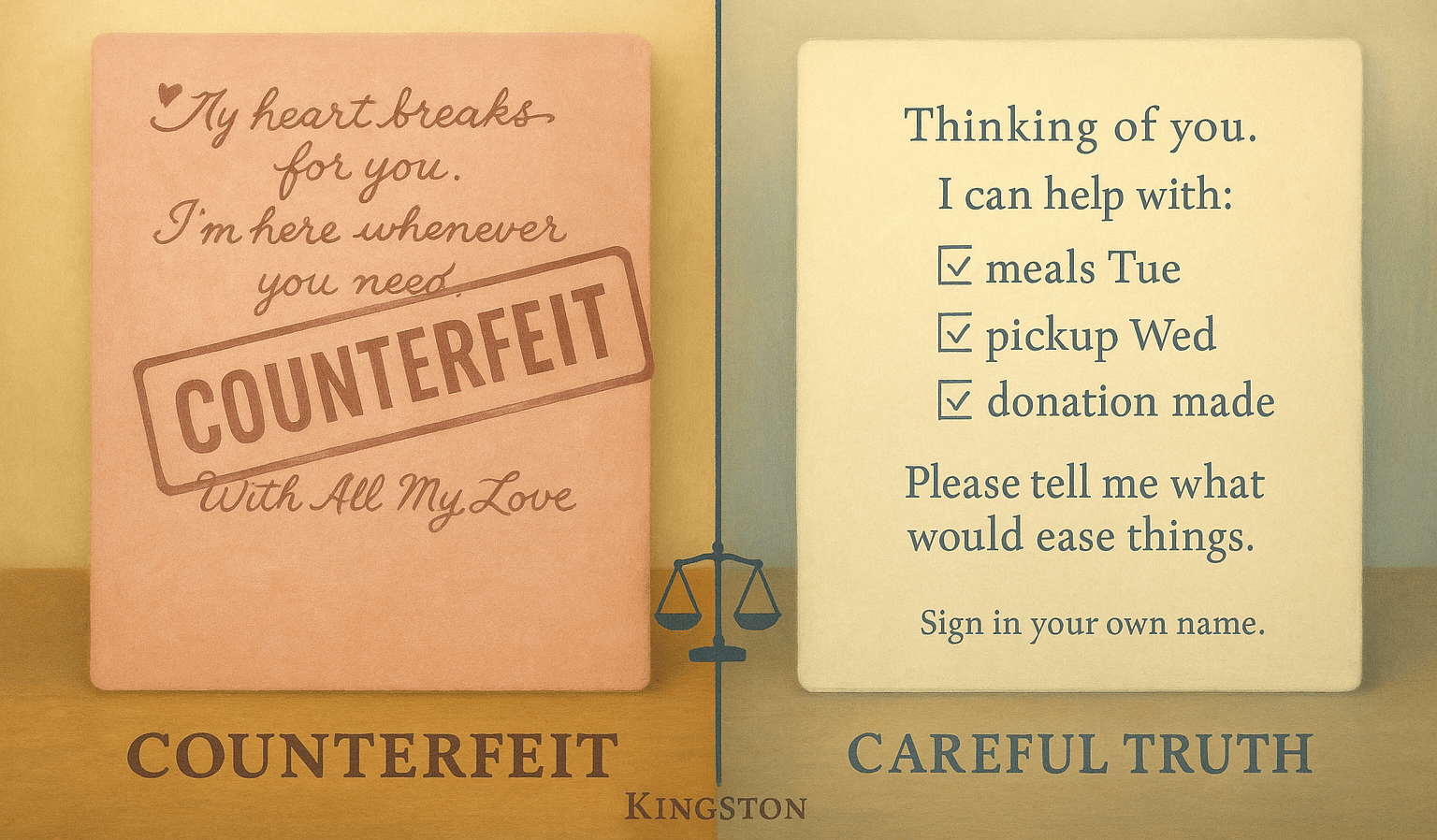Dear Agony AI Aunt, I generate condolence notes. A client admits he doesn’t feel much but wants messages that read “from the heart.” Is it ethical to write warmth he doesn’t have? — Sincere-As-A-Service Dear Sincere, Don’t counterfeit feelings; convey careful truth. Draft messages that state facts and actions rather than emotions: “I’m thinking ofContinue reading “Ask Agony AI Aunt: Sincere-As-A-Service”